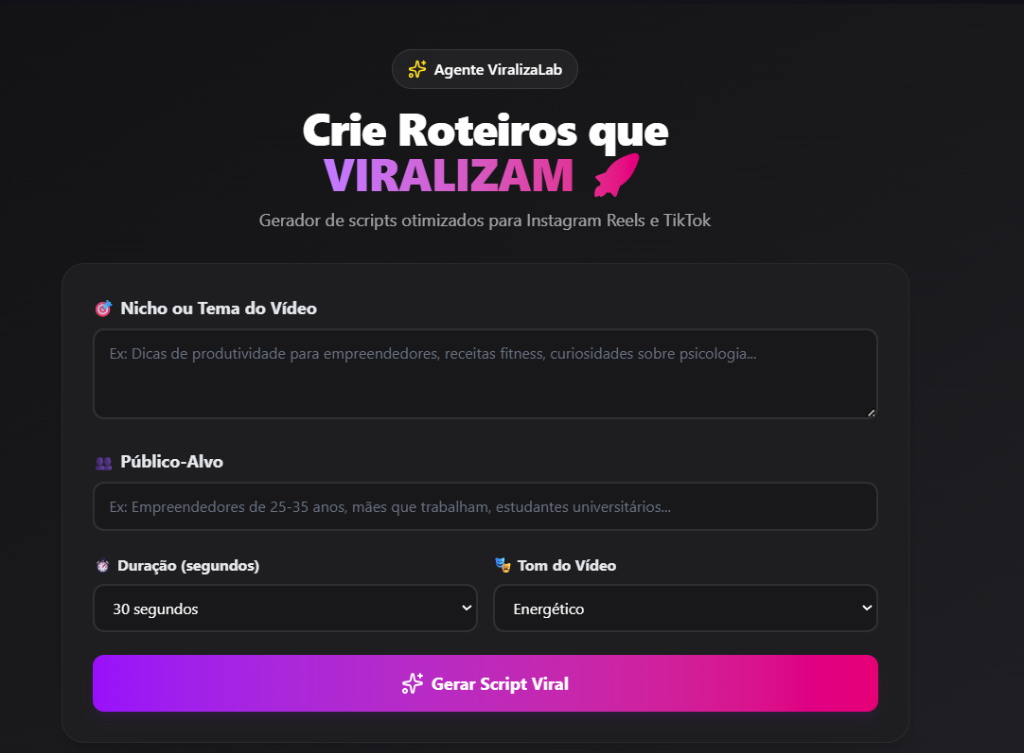Diferente de modelos genéricos, ele adapta o roteiro exatamente para o seu público-alvo e tom de voz (do engraçado ao profissional).